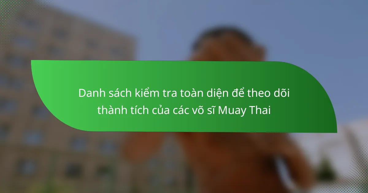 Theo dõi các thành tích chính cho các võ sĩ Muay Thái bao gồm việc giám sát sự tiến bộ của họ trong nhiều lĩnh vực như danh hiệu, hồ sơ trận đấu, tập luyện, hiệu suất và sự công nhận. Những chỉ số này cung cấp cái nhìn toàn diện về sự nghiệp và sự phát triển của một võ sĩ trong môn thể thao này.