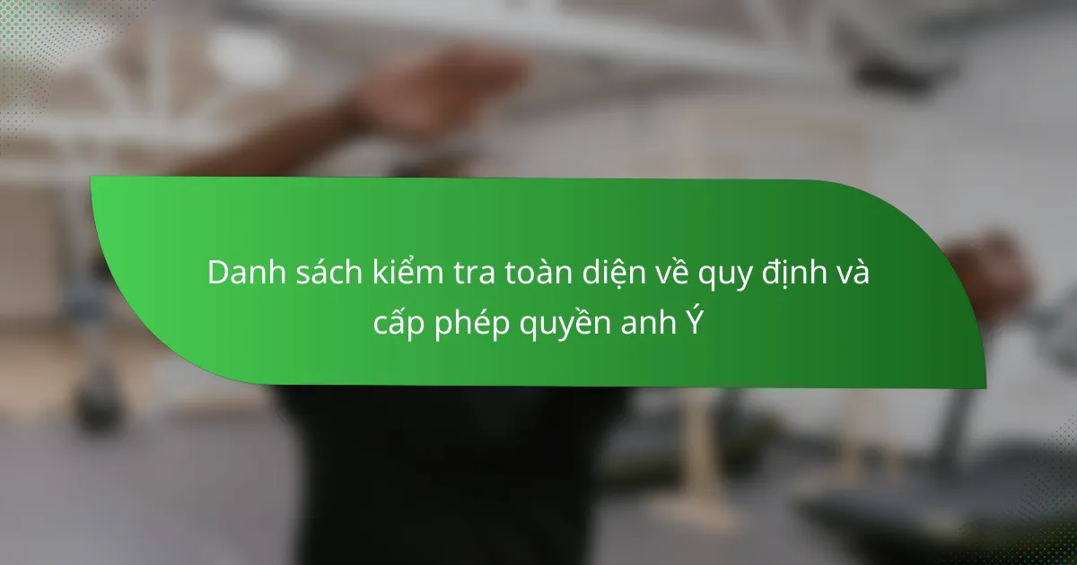 Các quy định về quyền anh tại Ý là rất quan trọng để đảm bảo tính toàn vẹn và an toàn của môn thể thao này, bao gồm các lĩnh vực như cấp phép, hạng cân và quảng bá sự kiện. Sự quen thuộc với những quy tắc này là rất cần thiết cho các vận động viên, nhà quảng bá và huấn luyện viên để điều hướng hiệu quả trong bối cảnh cạnh tranh. Danh sách kiểm tra toàn diện này phác thảo các bước và yêu cầu cần thiết để tuân thủ trong khuôn khổ quyền anh Ý.