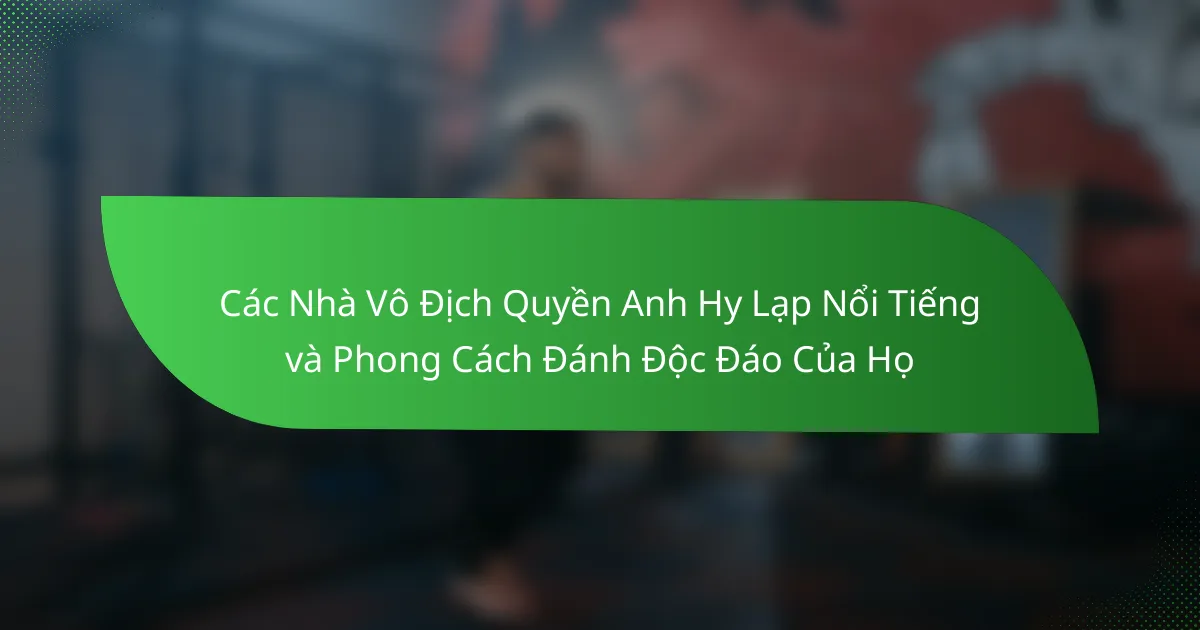Các nhà vô địch quyền anh Hy Lạp đã để lại dấu ấn đáng kể trong môn thể thao này, thể hiện những phong cách chiến đấu độc đáo kết hợp giữa kỹ thuật truyền thống và chiến lược hiện đại. Những huyền thoại như Michael Spinks và các võ sĩ đương đại như Kosta Tszyu là minh chứng cho sự nhanh nhẹn, kỹ thuật di chuyển và khả năng phòng thủ đặc trưng của quyền anh Hy Lạp. Thành công của họ là minh chứng cho việc tập luyện nghiêm ngặt, sự hướng dẫn hiệu quả và khả năng phục hồi tâm lý, tất cả đều góp phần vào những cách tiếp cận độc đáo của họ trong sàn đấu.