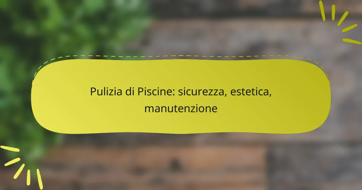 La pulizia delle piscine comprende diversi aspetti fondamentali come la sicurezza, l’estetica, la manutenzione e i costi associati. Mantenere una piscina pulita è essenziale per garantire un ambiente sicuro e piacevole per gli utenti.