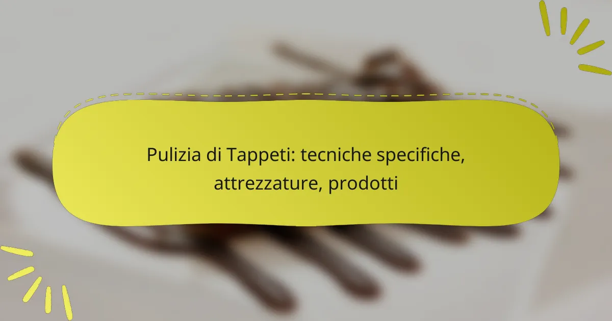 La pulizia dei tappeti richiede tecniche specifiche e attrezzature adeguate per garantire risultati ottimali. Metodi come la pulizia a secco, ad acqua e con vapore offrono diverse soluzioni a seconda del tipo di tappeto e del livello di sporco. Inoltre, la scelta dei prodotti detergenti è cruciale per trattare le macchie in modo efficace senza danneggiare i materiali. Investire in strumenti appropriati e conoscere le giuste tecniche può fare la differenza nella manutenzione dei tappeti.