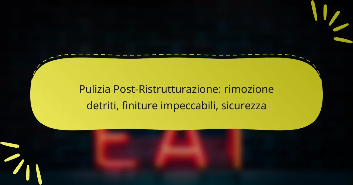 Il processo di pulizia post-ristrutturazione è fondamentale per garantire un ambiente sicuro e accogliente dopo i lavori. Comprende diverse fasi, dalla valutazione iniziale alla rimozione dei detriti, fino alla pulizia delle superfici e al controllo finale della sicurezza.