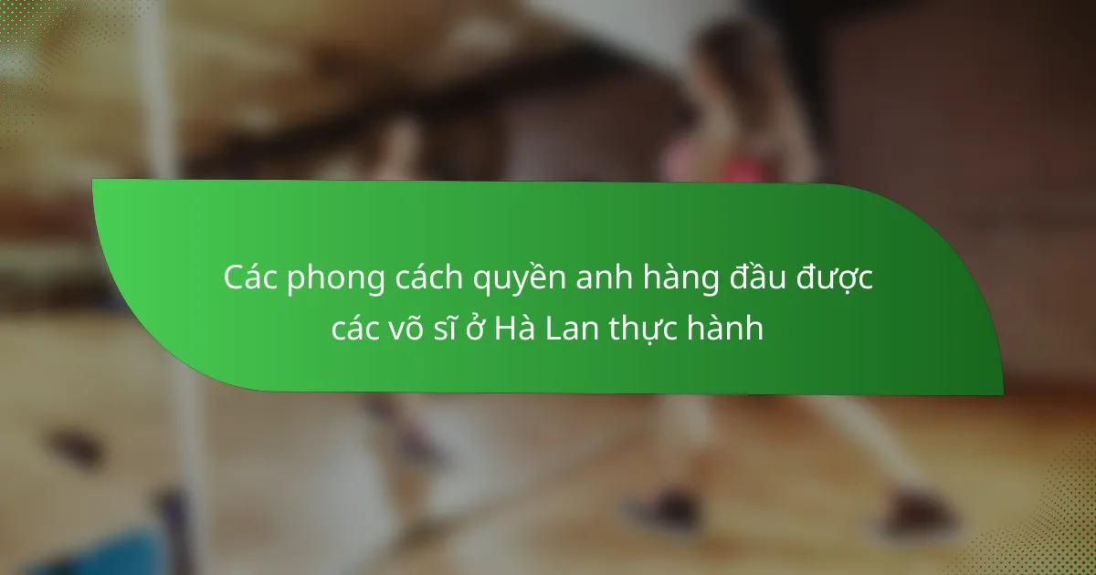 Các phong cách quyền anh hàng đầu được các võ sĩ ở Hà Lan thực hành là gì?